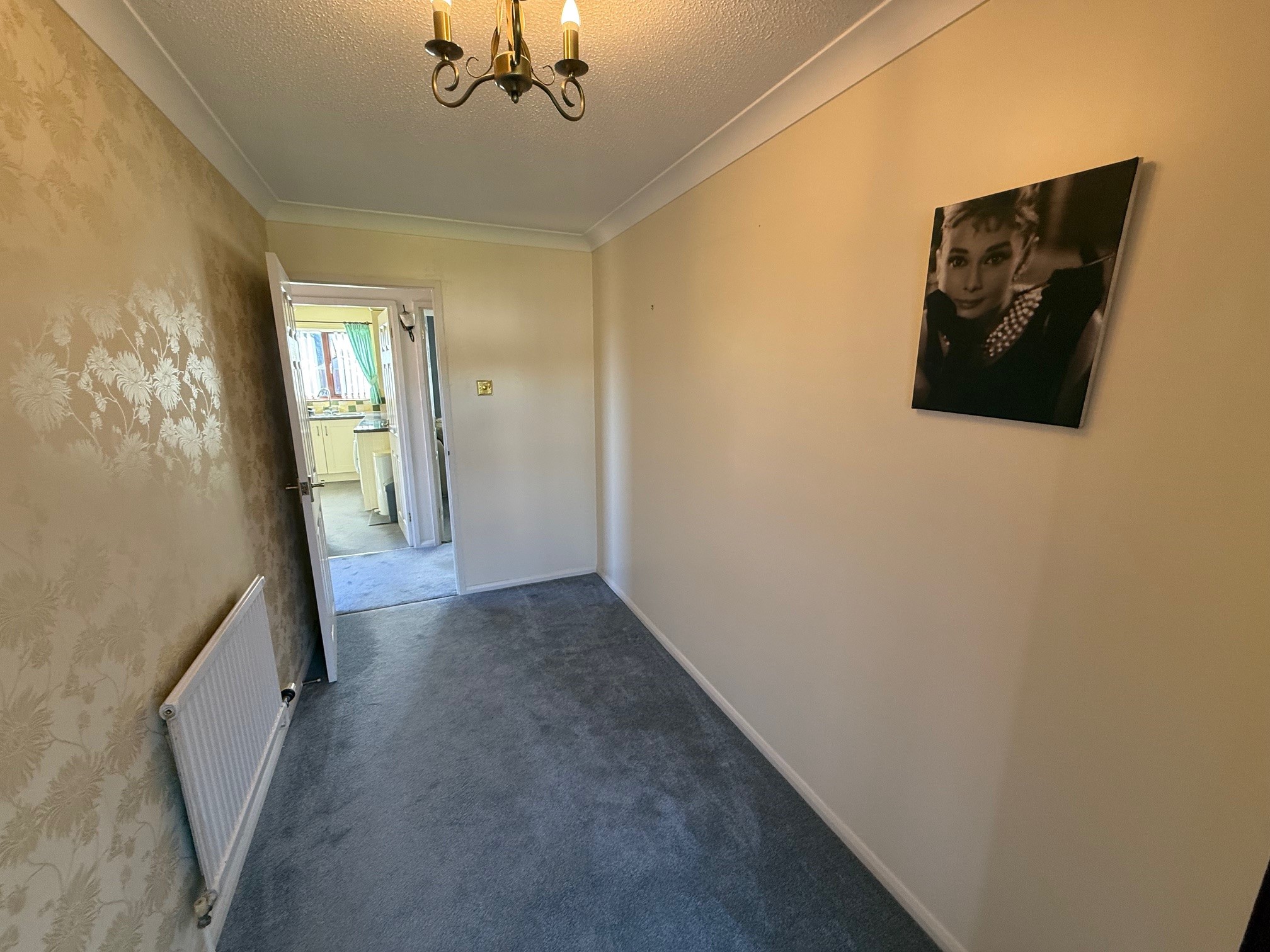 uPVC part glazed front door to Entrance Hallway: Telephone point, radiator, access to roof storage space, built in storage cupboard.