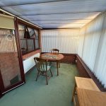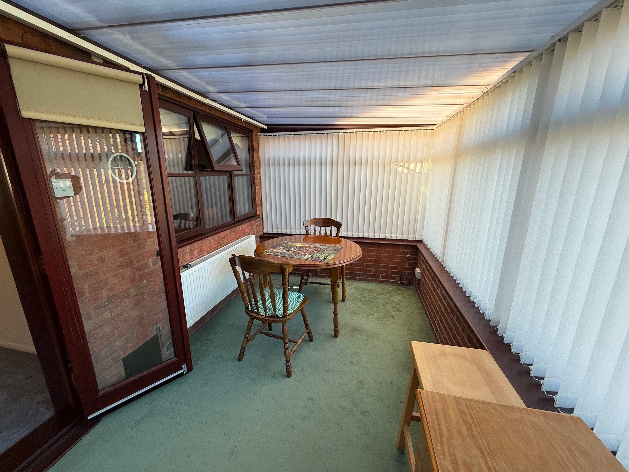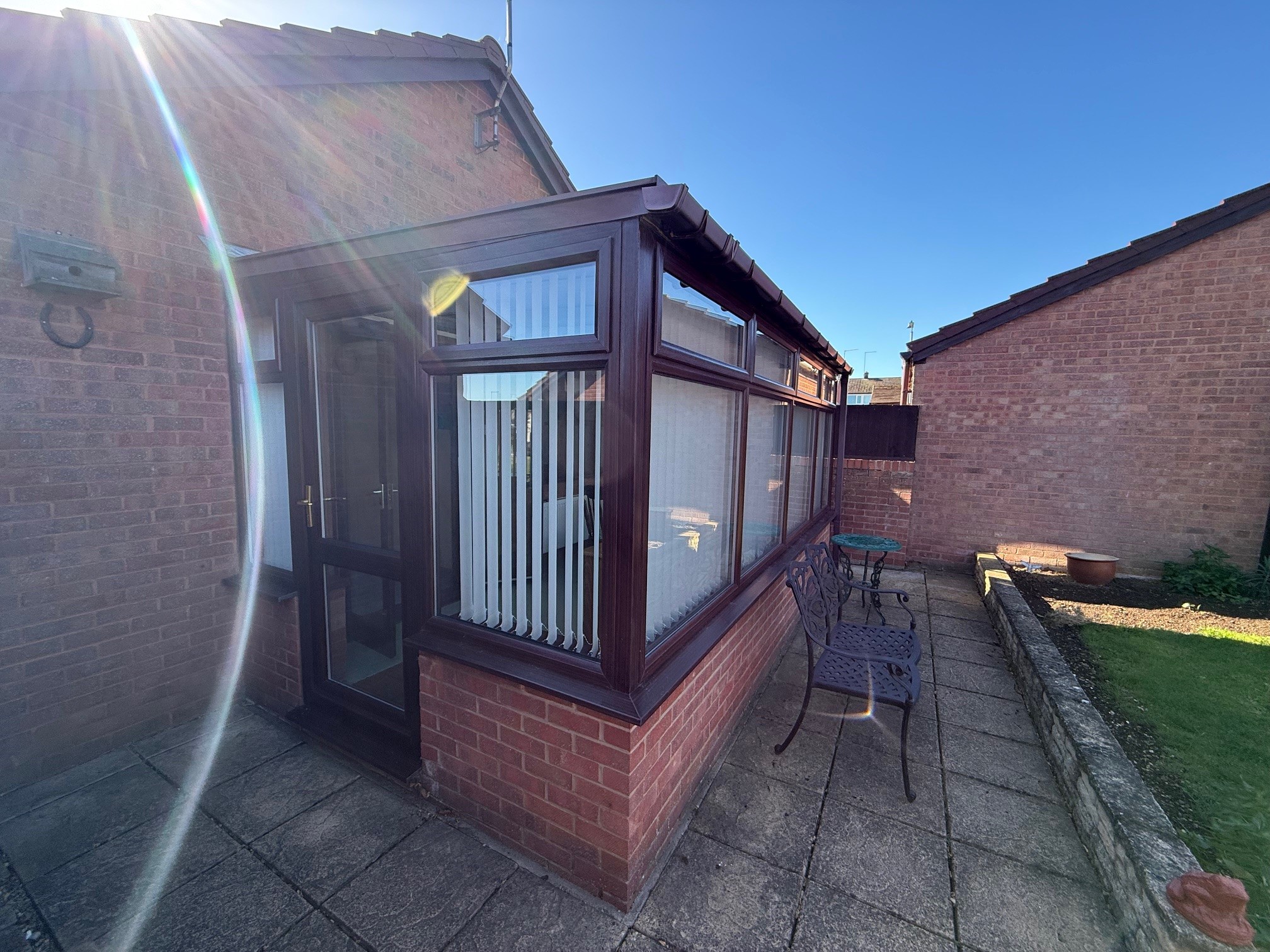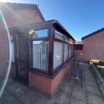 8' 0" x 13' 2" (2.44m x 4.01m) Constructed dwarf brick walls with dark wood effect uPVC units over, polycarbonate sloped roof, radiator, one wall light point, Door opening to outside.