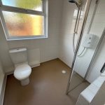TRITON electric shower with glass screen, low level WC with concealed flush, pedestal wash hand basin, chrome heated ladder towel rail, non slip flooring, complimentary splash back tiling, extractor fan.