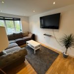 8' 11" x 21' 9" overall and max (2.72m x 6.63m) Laminate flooring, under floor electric heating, inset ceiling spot lights, wall mounted flat screen TV which is included in this sale, open through to Kitchen.