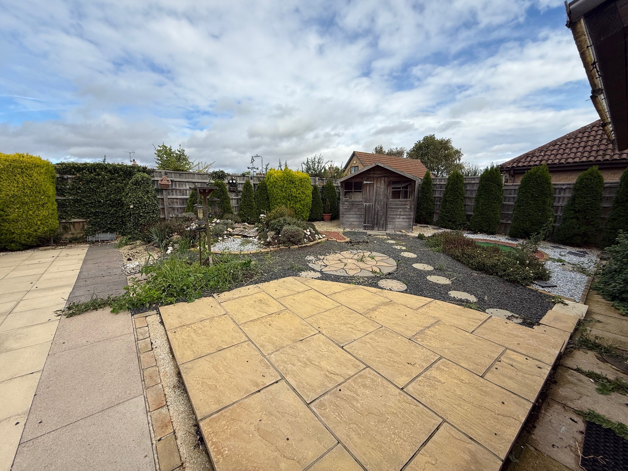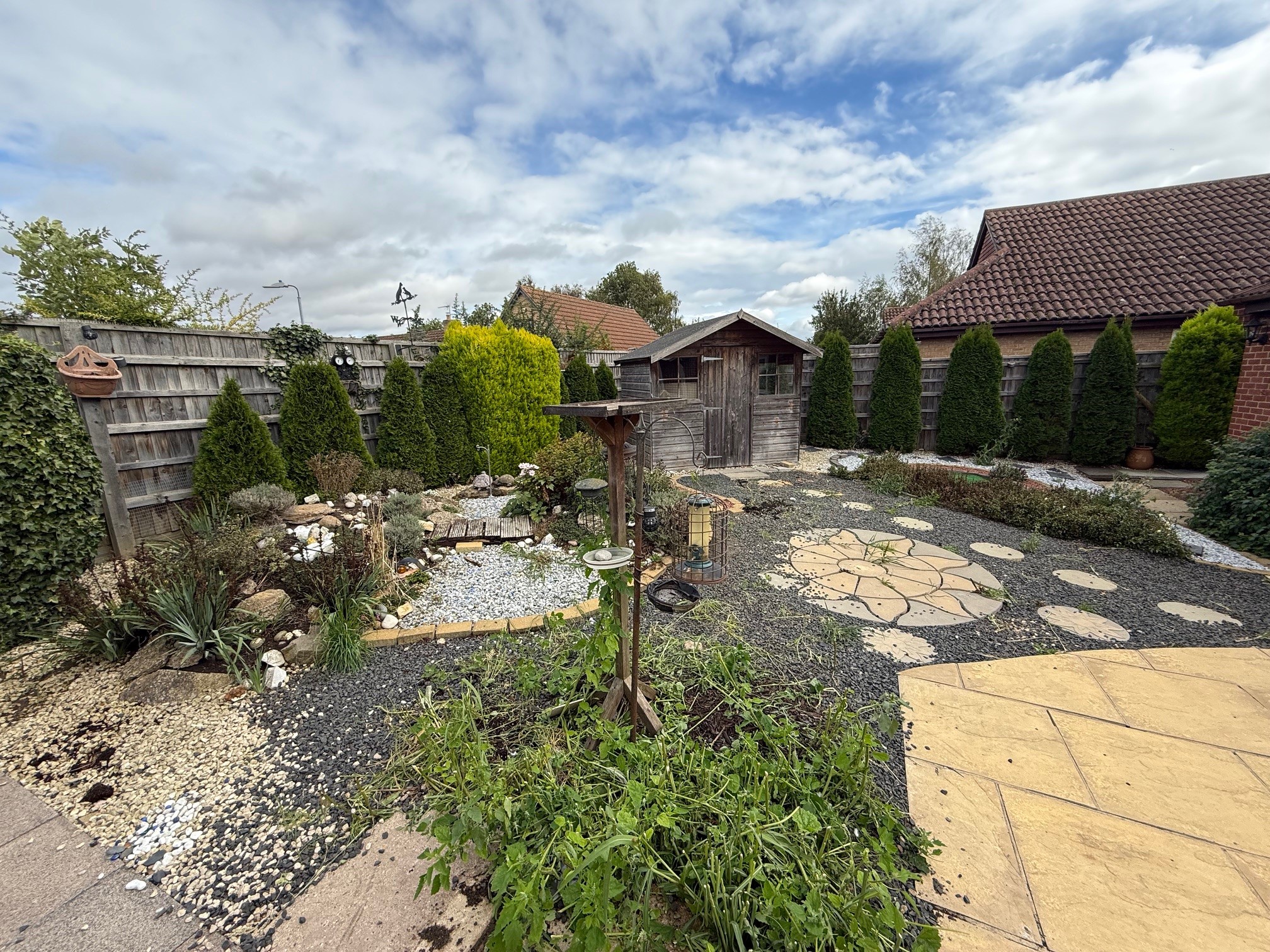 The rear garden is a lovely feature of the bungalow and benefits from a good degree of privacy. The rear garden is separated into several different areas including a paved patio, gravelled easy maintenance beds and a lovely large raised well stocked flower bed. Included in the sale is a timber garden shed, storage unit and water butt.