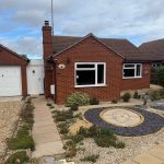 The front garden is open plan and is laid to attractive different coloured stone and chippings including a circular feature bed. A driveway to one side of the bungalow provides off road parking and leads to the now converted single garage which still retains its garage door.